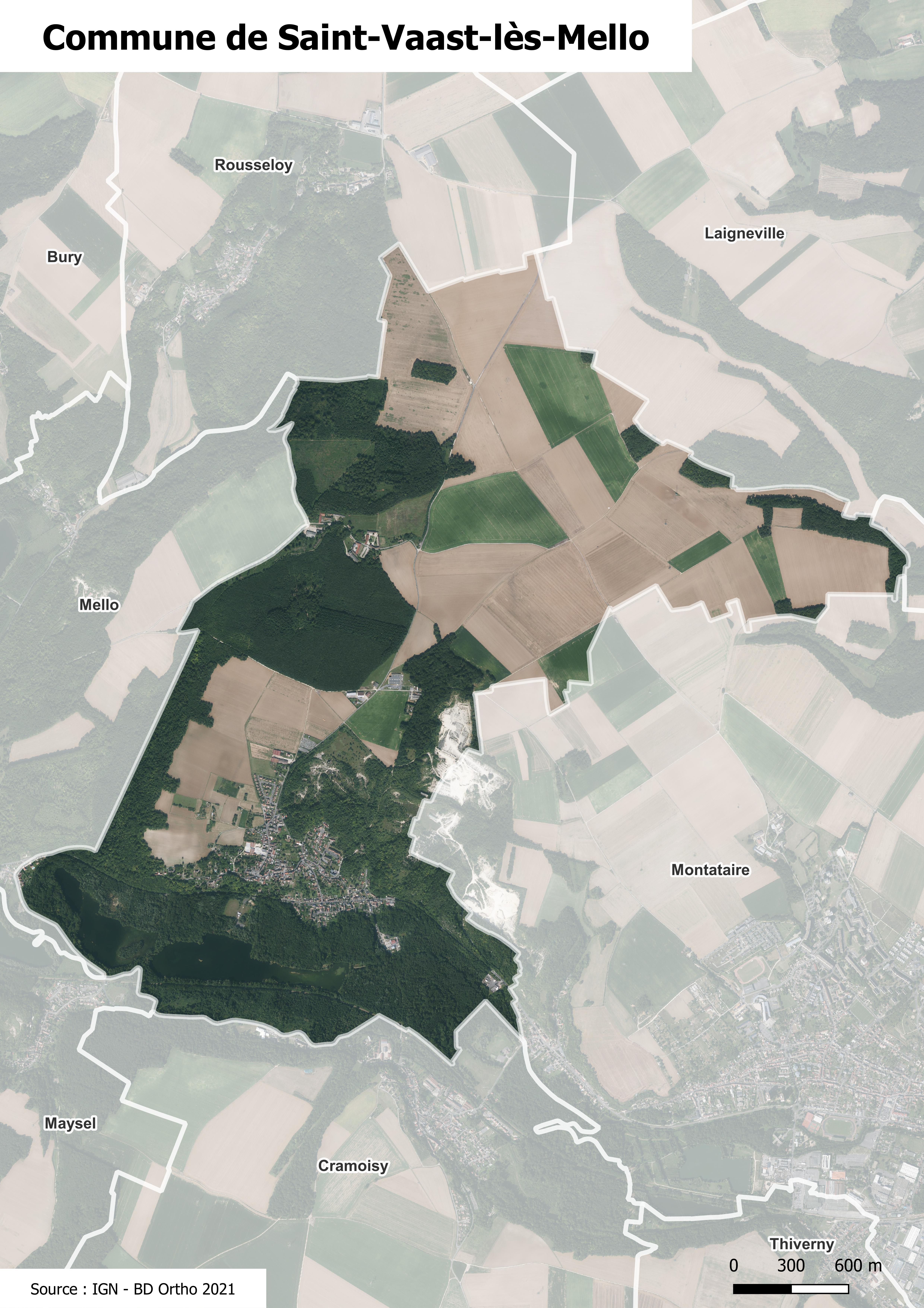 Photographie aérienne de la commune de Saint-Vaast-lès-Mello.