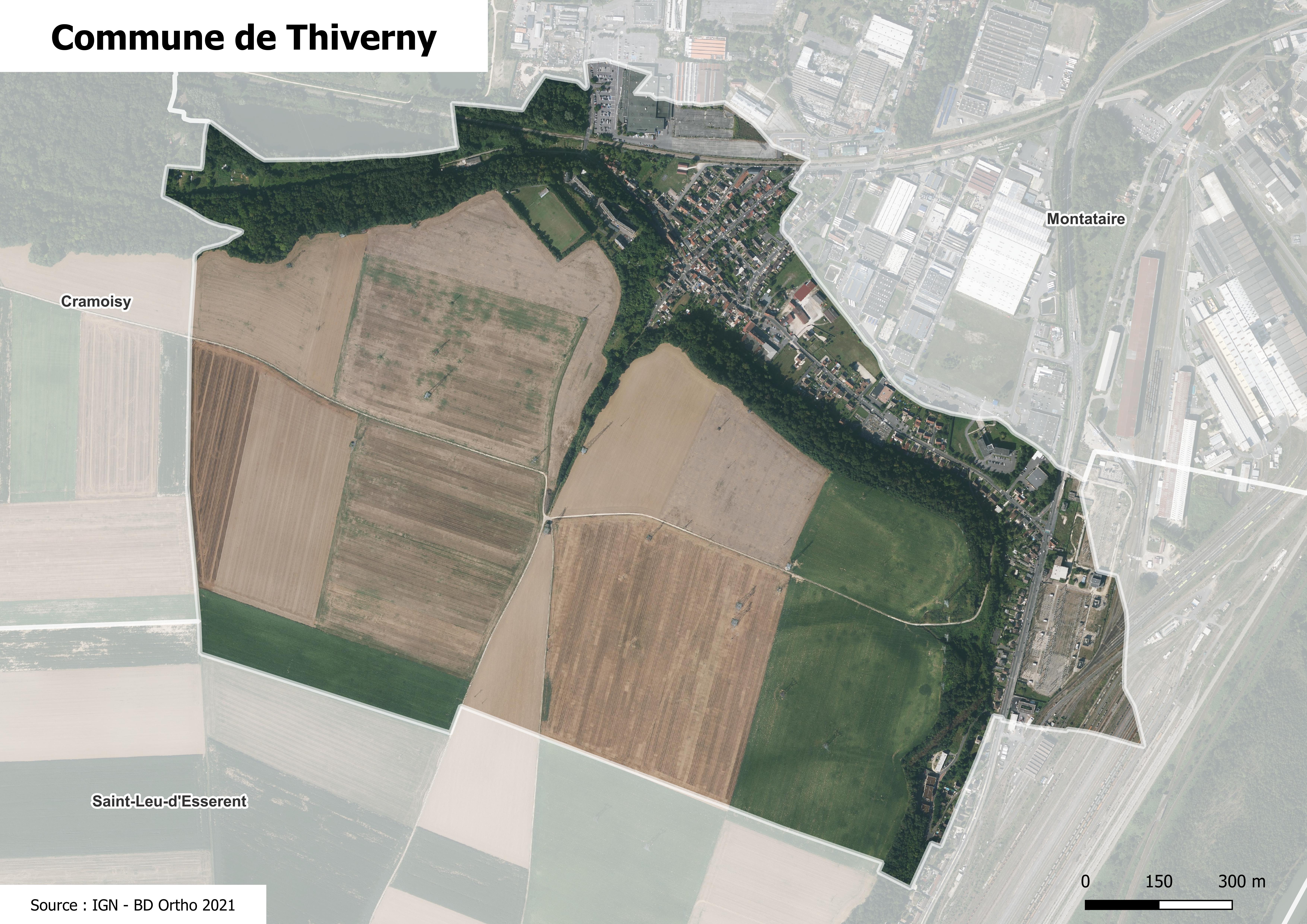 Photographie aérienne de la commune de Thiverny.
