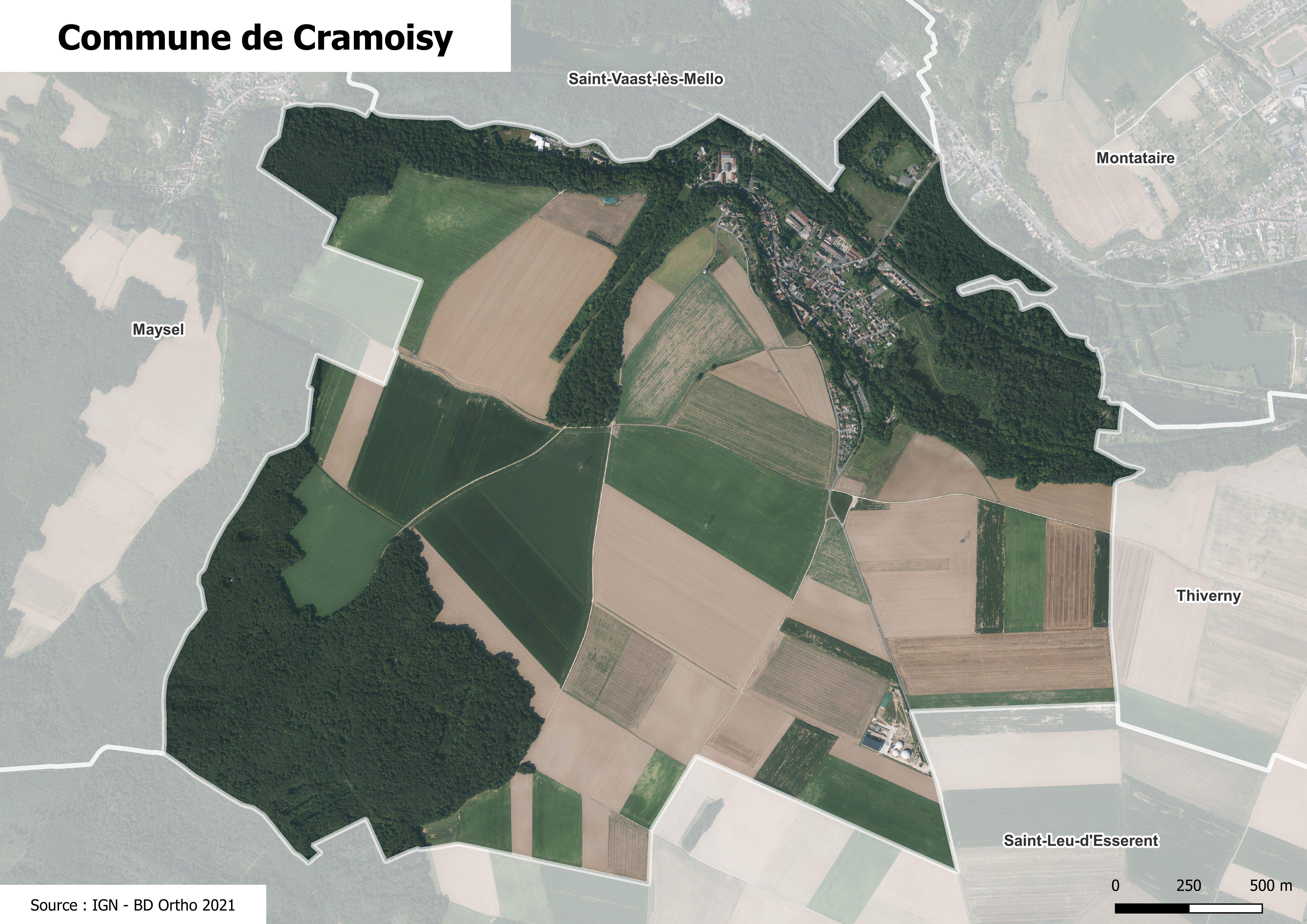 Photographie aérienne de la commune de Cramoisy.