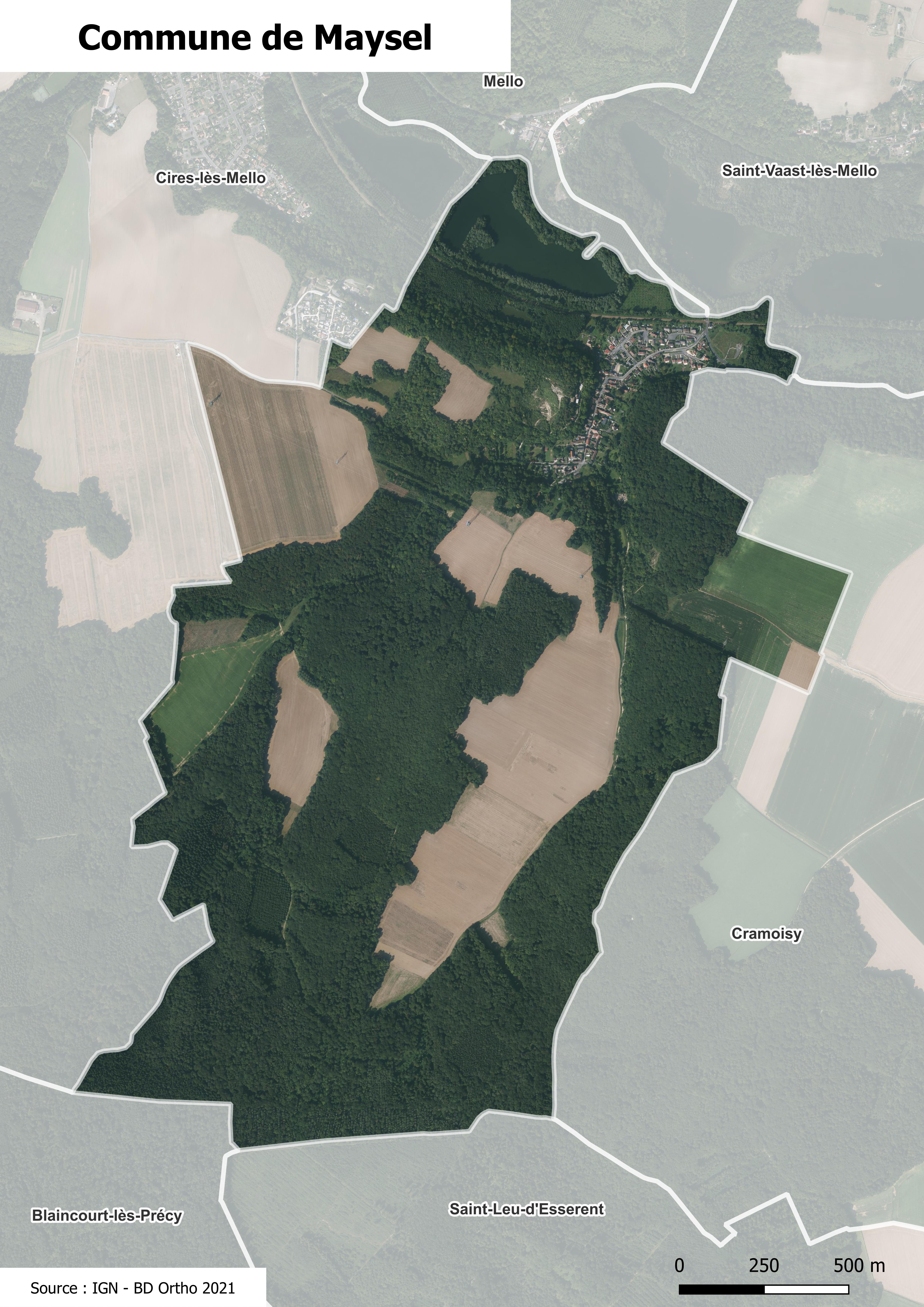 Photographie aérienne de la commune de Maysel.