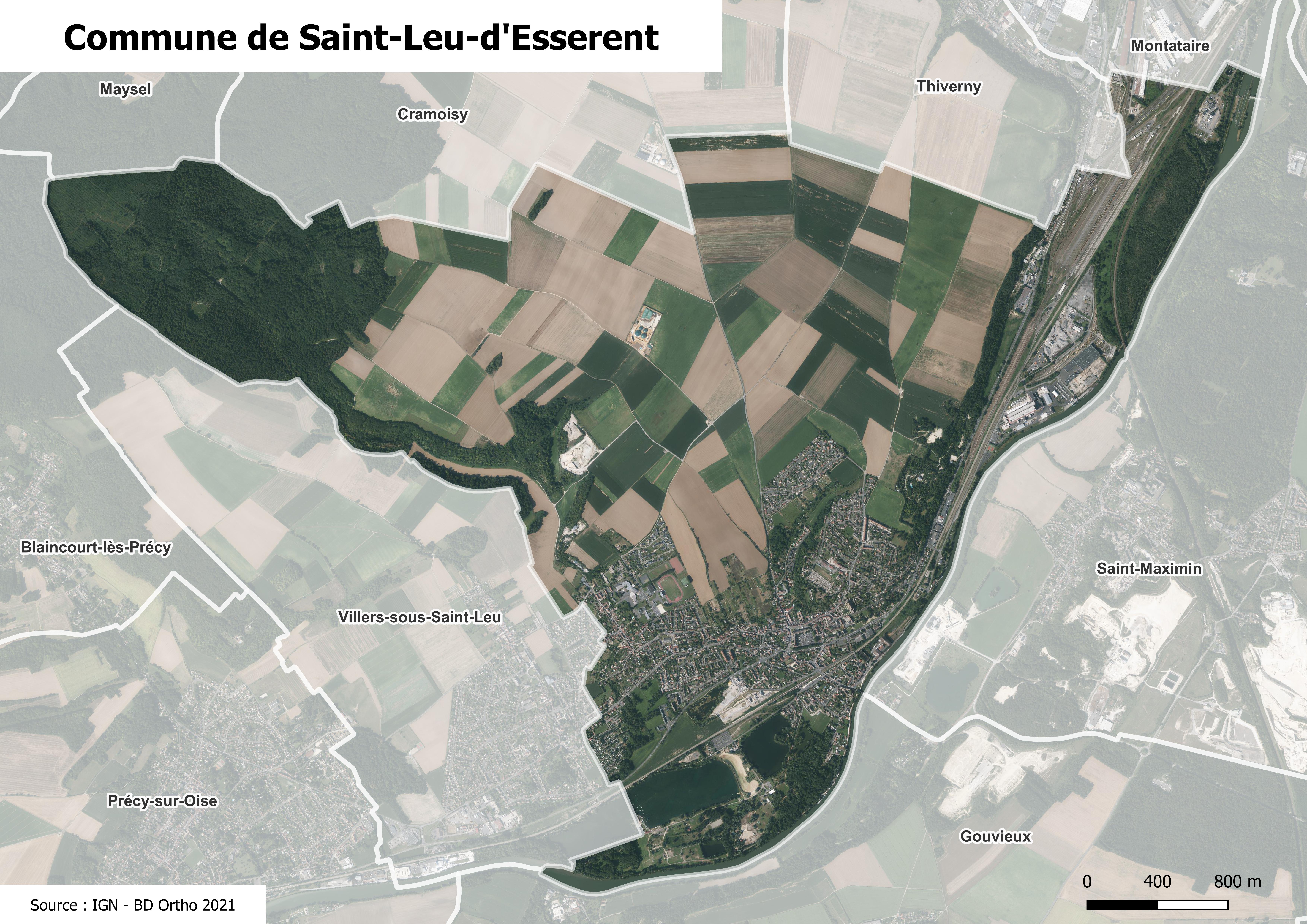 Photographie aérienne de la commune de Saint-Leu-d'Esserent.